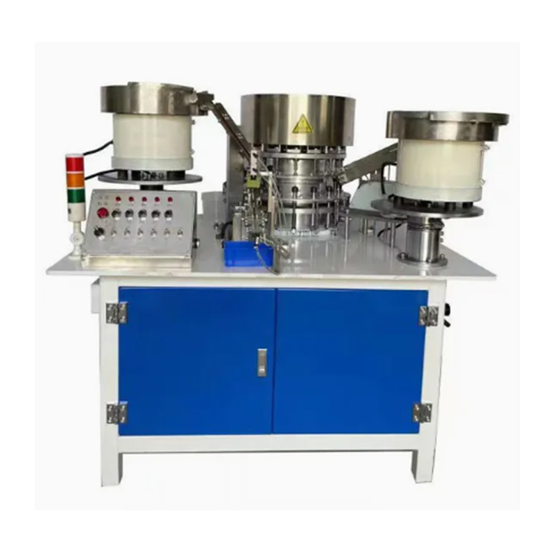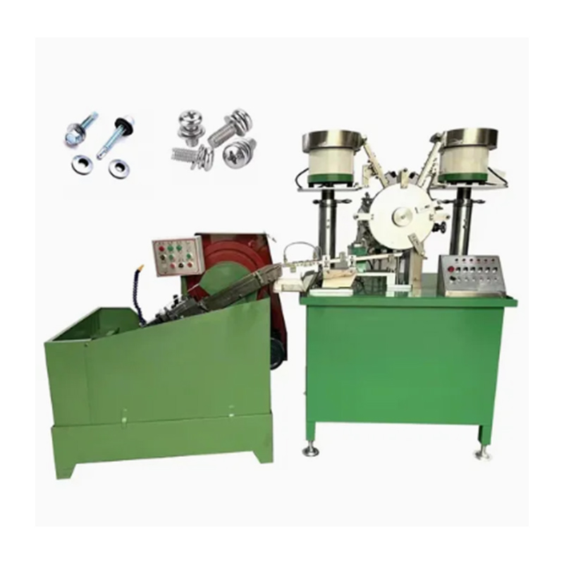 La máquina ensambladora de arandelas de tornillos autoperforantes tiene capacidades de operación completamente automática y puede completar los procesos principales de alimentación precisa del tornillo, alimentación precisa de la arandela y posicionamiento de la arandela debajo de la cabeza del tornillo en secuencia, sin la necesidad de intervención humana en los pasos clave del ensamblaje. Los tornillos y las arandelas se introducen en dos tolvas respectivamente, y luego la máquina los clasifica y alinea y, finalmente, las arandelas se colocan con precisión en los ejes de los tornillos. Finalmente, la máquina los entrega limpiamente.