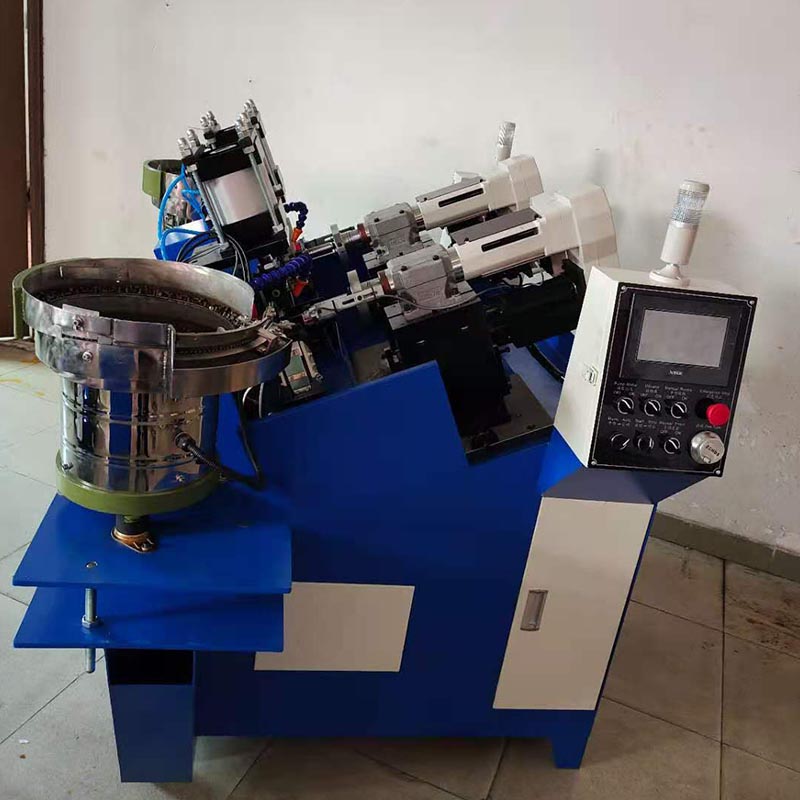 La máquina se utiliza principalmente para roscado de orificios pasantes. El macho corta la rosca de la superficie superior de la tuerca, pasa a través del cuerpo principal de la tuerca y sale de la posición cerca de la parte elevada en la superficie inferior de la tuerca. Para tuercas soldadas, el roscado completo es crucial para proporcionar la máxima longitud de enganche de rosca para el perno correspondiente después de la soldadura.